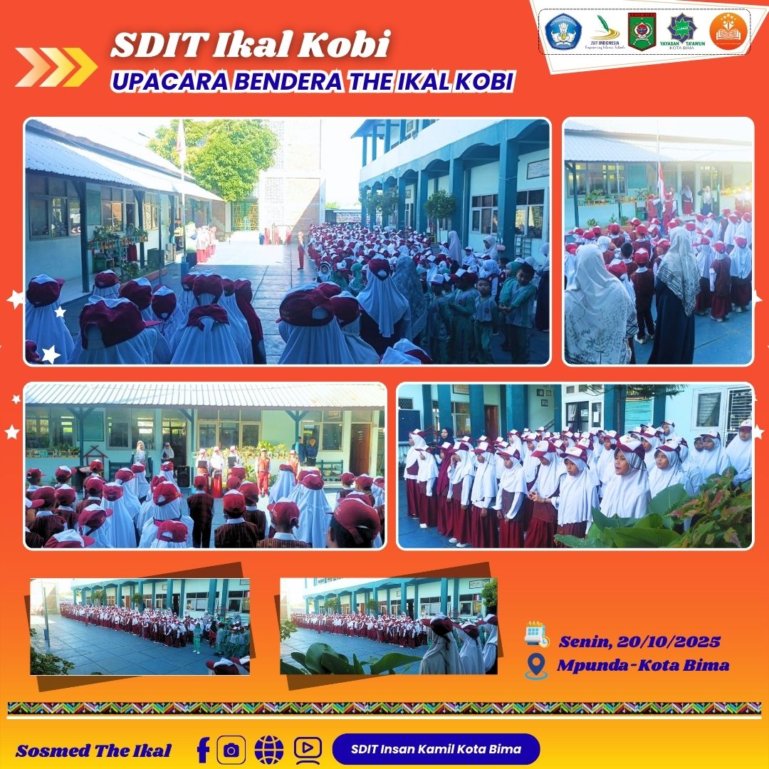 Seluruh siswa dan guru SDIT Insan Kamil Santi Kota Bima melaksanakan kegiatan Upacara Bendera rutin setiap hari Senin pagi (20/10/2025) di halaman sekolah. Kegiatan ini berjalan dengan khidmat dan tertib, dengan petugas upacara adalah siswa-siswi dari Kelas 6B.