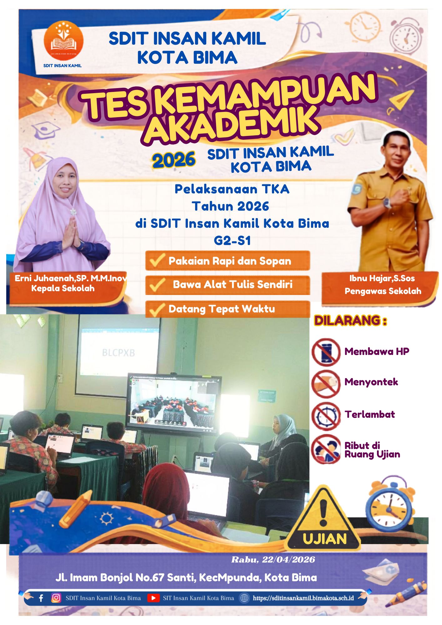 Pelaksanaan Tes Kemampuan Akademik (TKA) di SDIT Insan Kamil memasuki hari ketiga pada Rabu (22/04). Memasuki Gelombang 2 Sesi 1, suasana di lingkungan sekolah tampak dipenuhi oleh semangat para peserta yang datang sejak pagi hari dengan wajah ceria namun penuh konsentrasi.