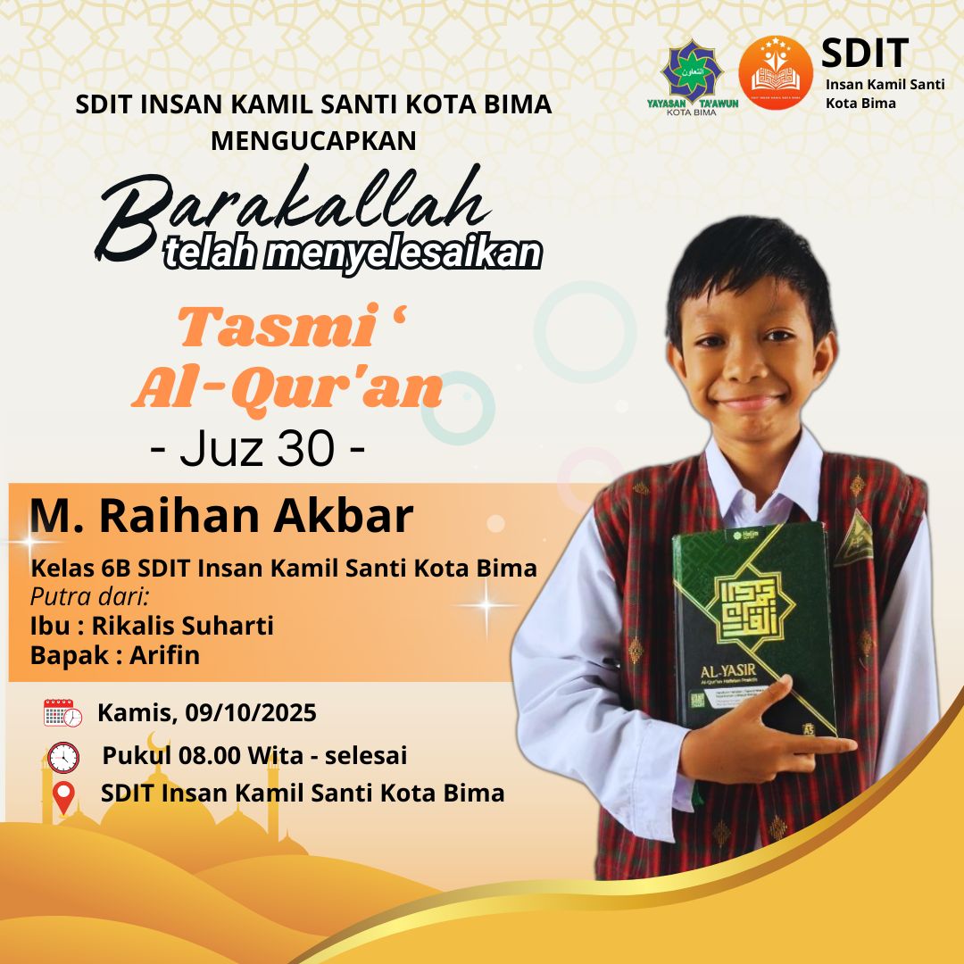 Tasmi' Alqur'an Juz 30 : Barakallah Abang Raihan Siswa SDIT Ikal Kobi Kelas 6B