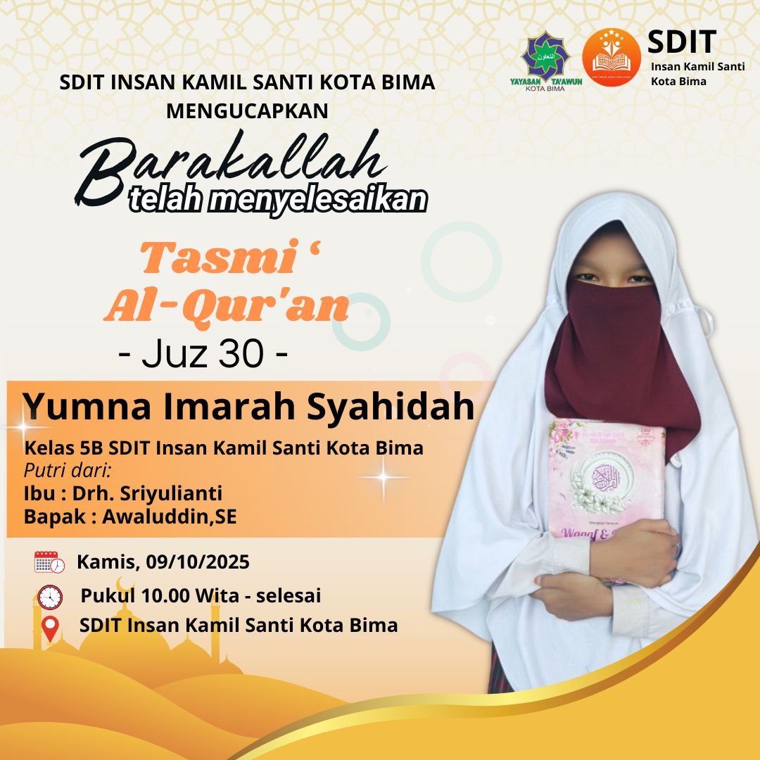 Tasmi' Alqur'an Juz 30 : Barakallah Kaka Yumna Siswa SDIT Ikal Kobi Kelas 5B