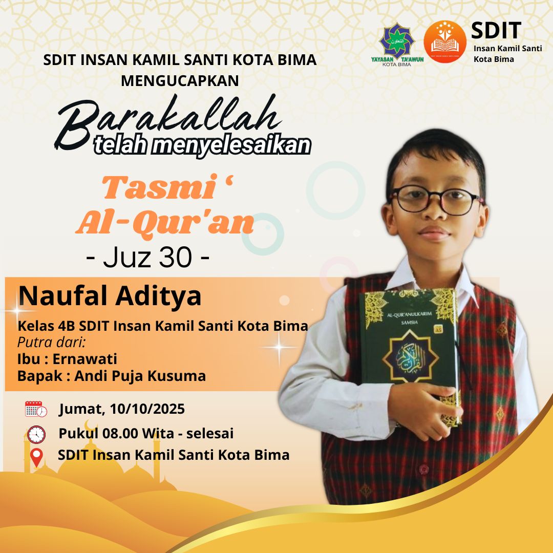 Tasmi' Alqur'an Juz 30 : Barakallah Abang Naufal Siswa SDIT Ikal Kobi Kelas 4B