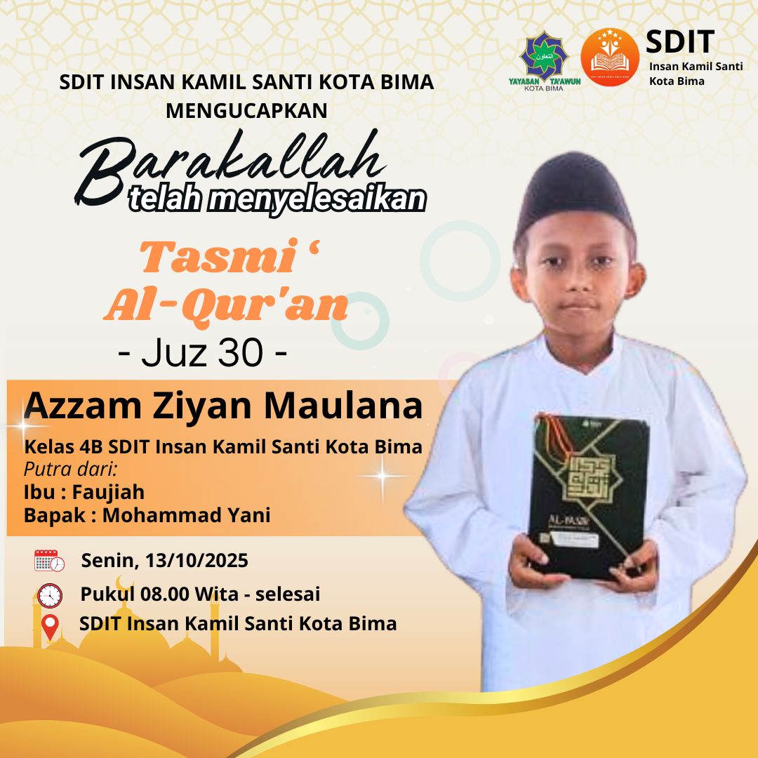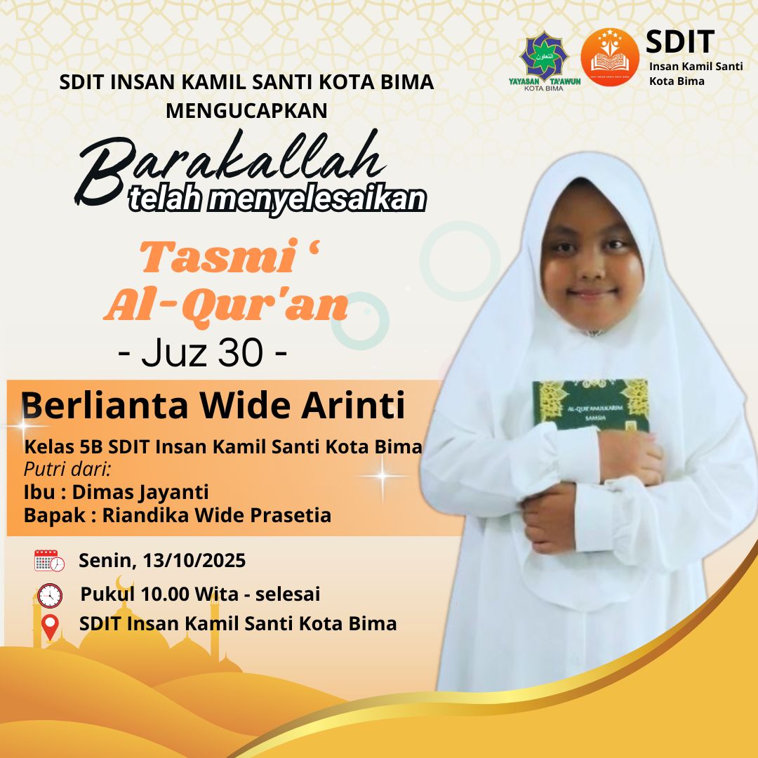 Tasmi' Alqur'an Juz 30 : Barakallah Kakak Berlian Siswa SDIT Ikal Kobi Kelas 5B