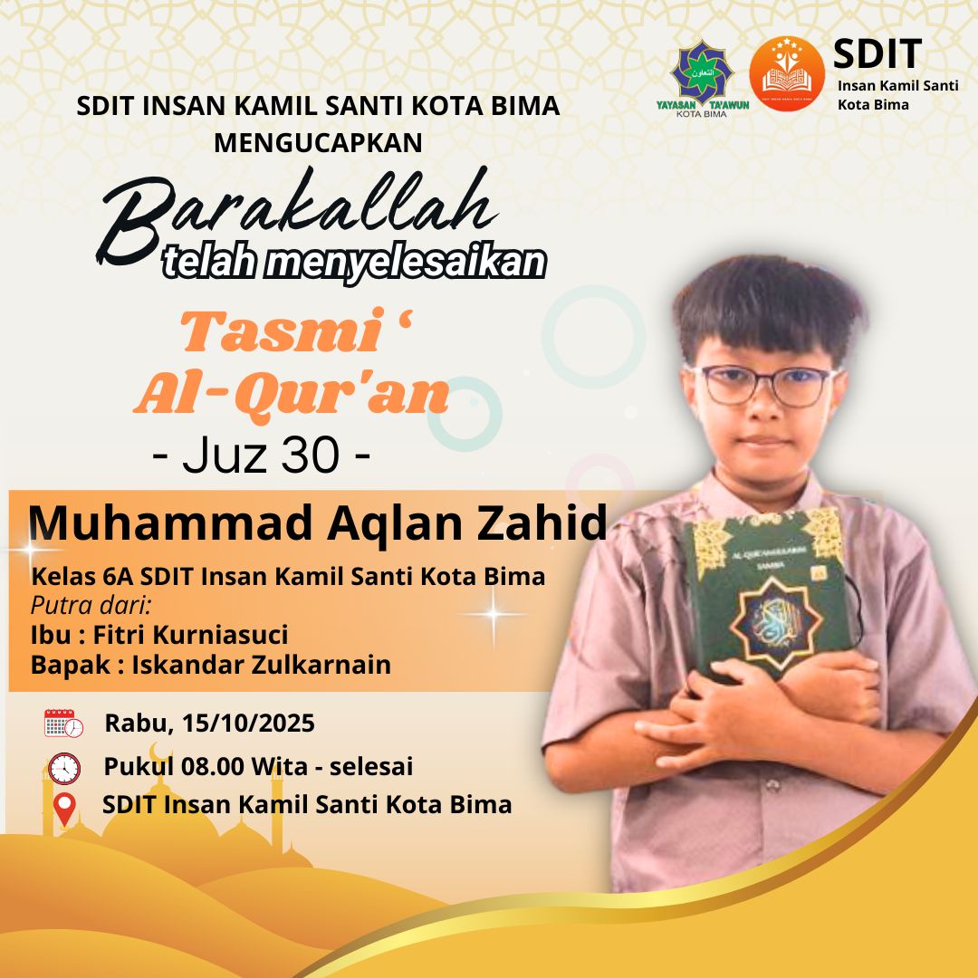 Tasmi' Alqur'an Juz 30 : Barakallah Abang Aqlan Siswa SDIT Ikal Kobi Kelas 6A